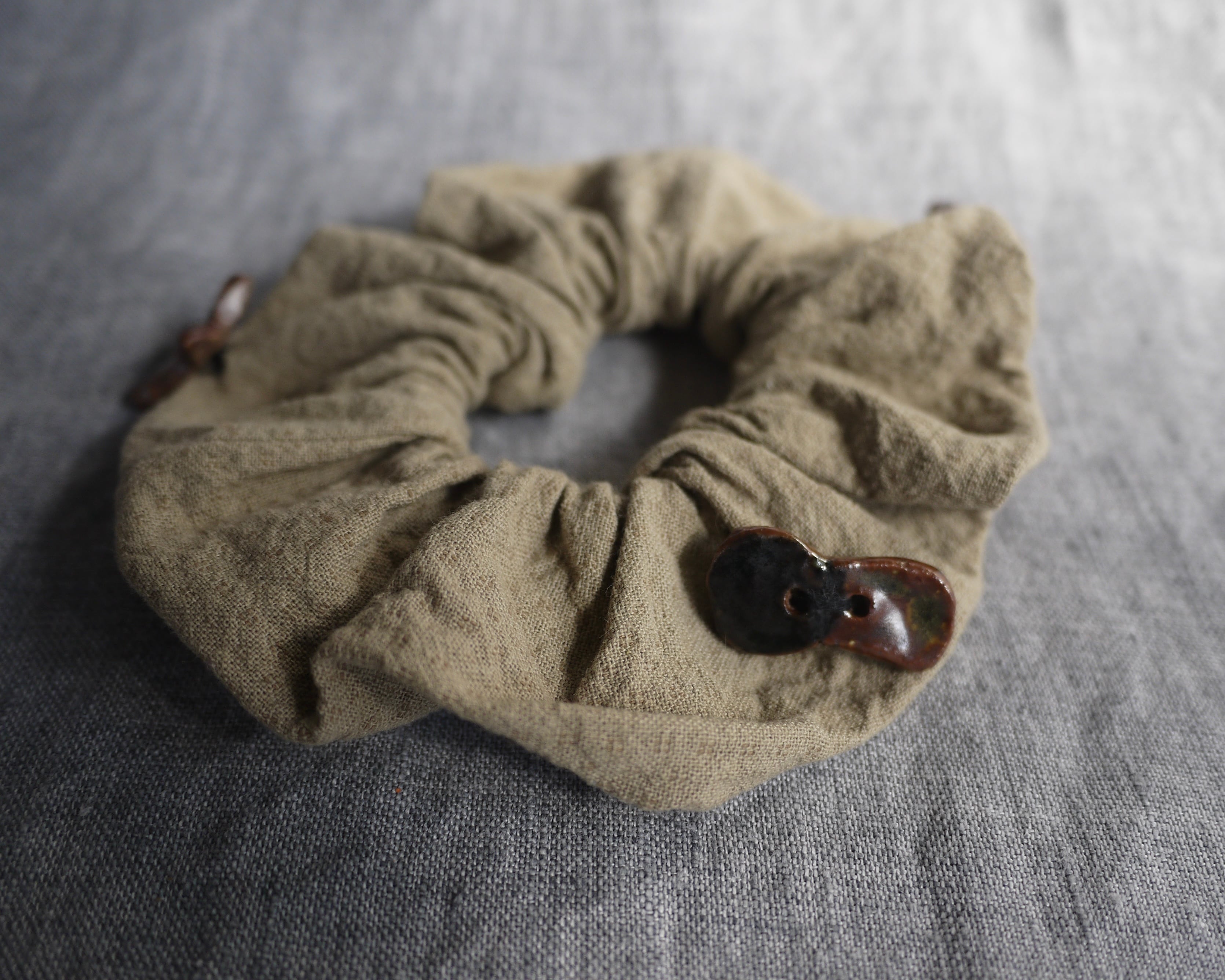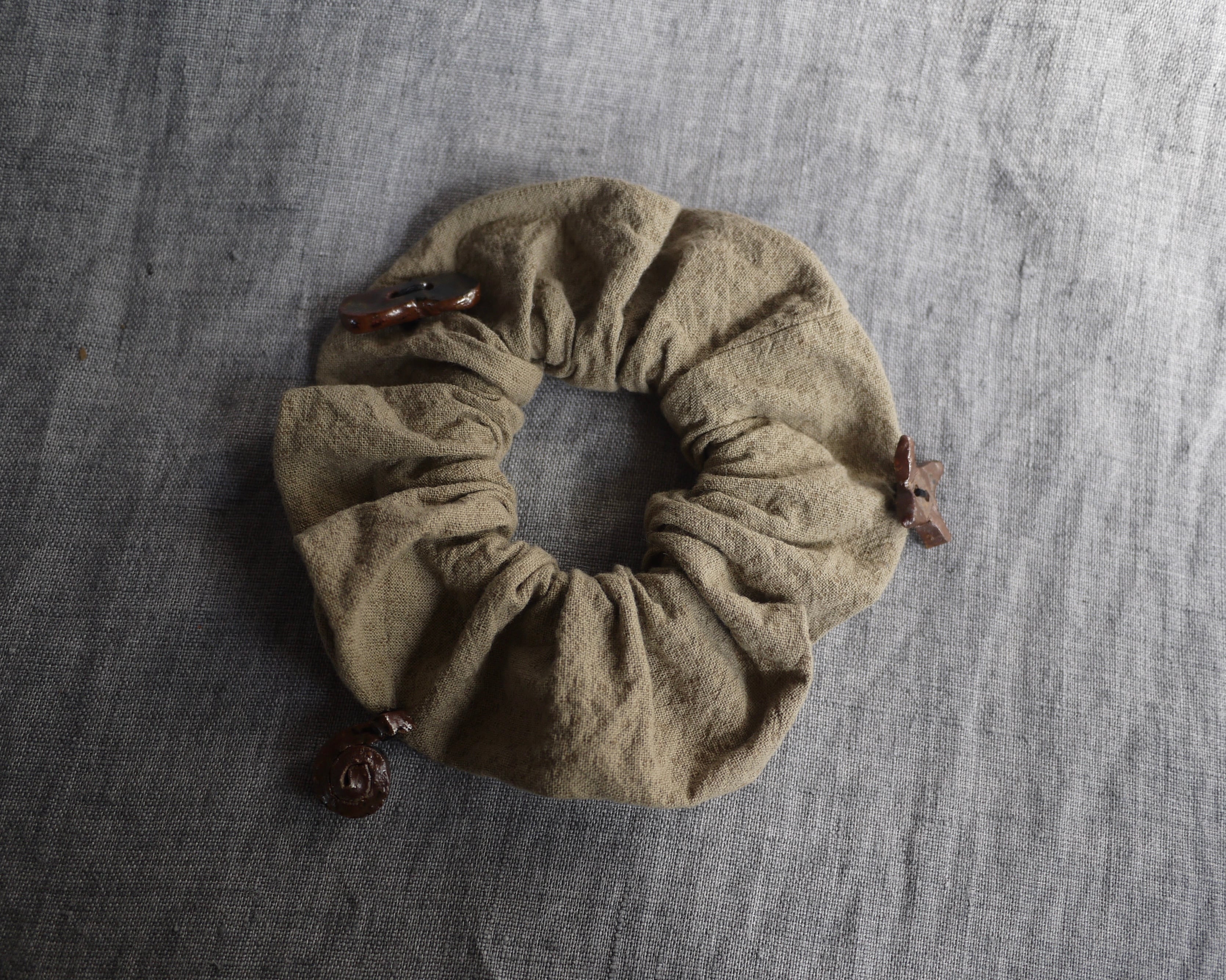 ハンドメイドシュシュに ほしのともたちを散りばめて ceramic , cotton linen 2026.